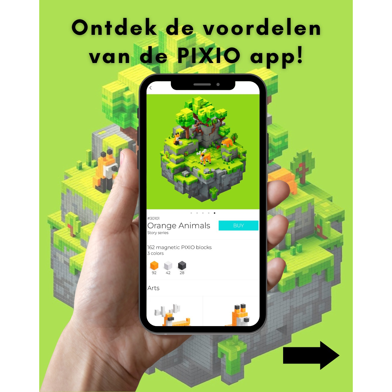 Pixio zijn kleine vierkante blokjes van kunststof met daarin 6 unieke magneetjes aan iedere zijde. De magneten zorgen ervoor dat de blokjes aan elke zijde hechten. Ze klikken op magische wijze aan elkaar vast.Bij dit magnetische speelgoed wordt ook een boekje geleverd met figuurtjes die nagemaakt kunnen worden. Bovendien kun je de gratis bijbehorende app downloaden voor nog veel meer ideeën en suggesties. Hiermee wordt het speelplezier nog uitgebreider en kunnen kinderen hun creativiteit nog meer ontplooien. De app biedt eindeloze mogelijkheden om nieuwe ontwerpen te ontdekken, waardoor het speelgoed nog leerzamer en boeiender wordt.