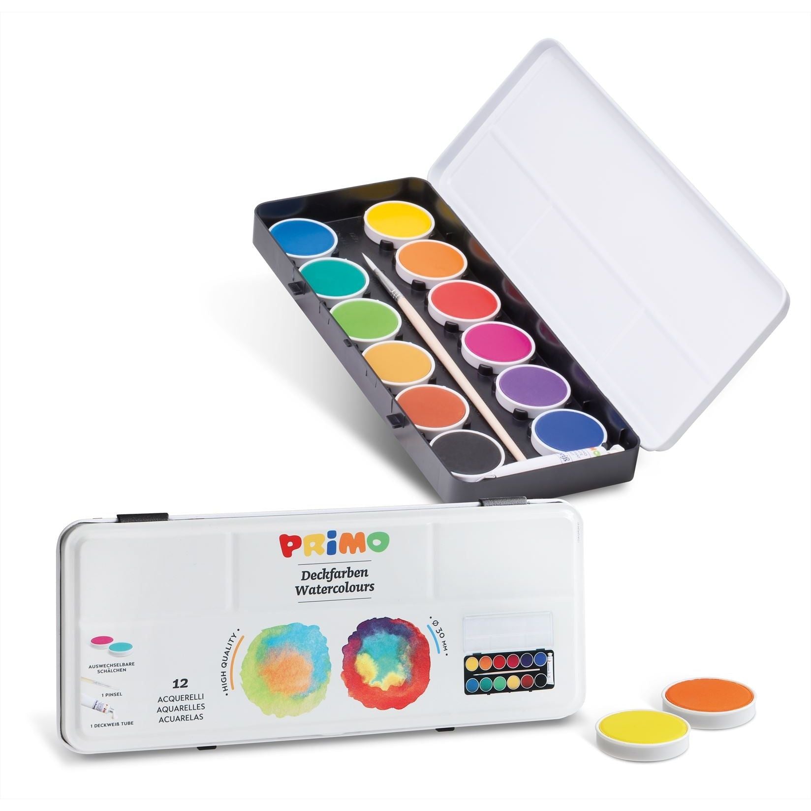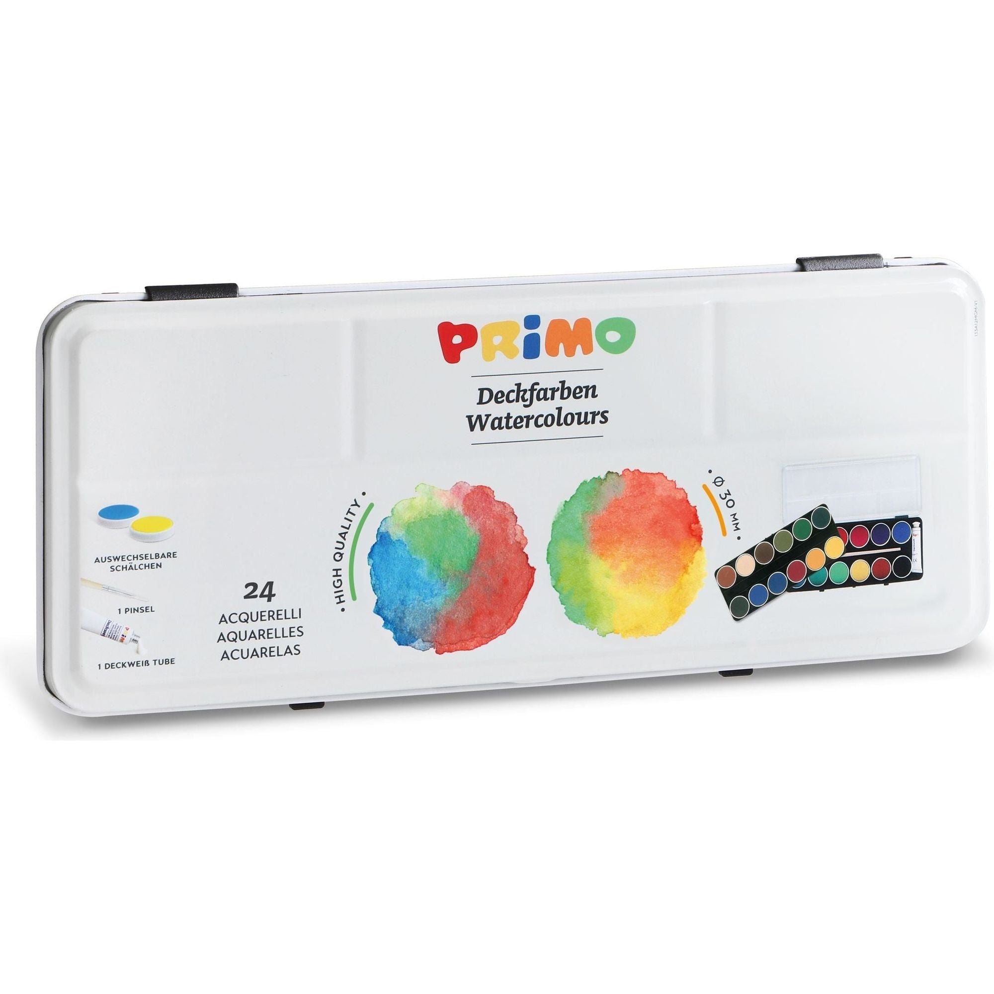 Aquarelverf Blik Ø30 mm (24 Kleuren), Primo
