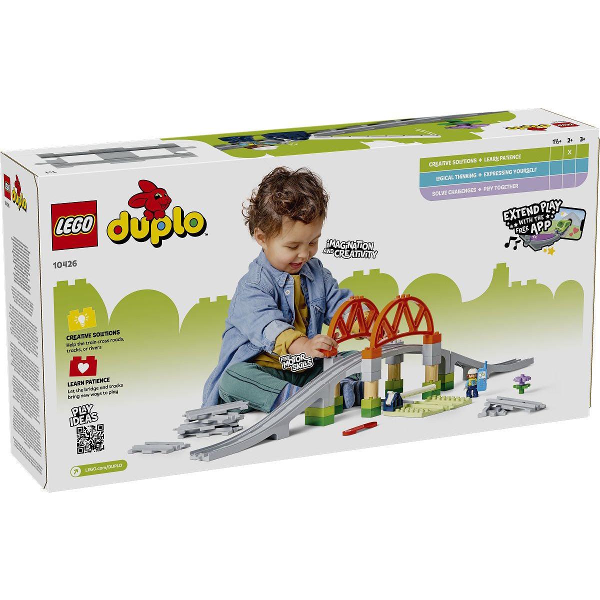 Jonge kinderen maken hun LEGO DUPLO treinsets nog leuker en ontwikkelen hun fijne motoriek met deze set treinrails voor peuters.