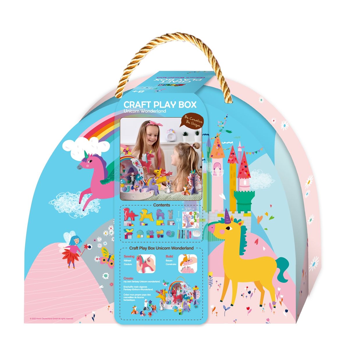 De prachtige Eenhoorn knutselset is een supergave, herbruikbare doos die opengaat en een felgekleurde en prachtig geïllustreerde achtergrond met eenhoornthema onthult. Combineer naaiactiviteiten met stoffen materialen en kwaliteitskarton om 3 staande eenhoorns en 17 andere staande dieren en decoratie zoals bloemen en bomen te maken.Kinderen kunnen hier hun eigen verbazingwekkende Eenhoorn Wonderland maken! Het handvat aan de bovenkant van de doos maakt het perfect om mee te nemen en om alle onderdelen veilig in te pakken voor de volgende keer.Avenir's Eenhoorn Wonderland Knutseldoos zal kinderen uren bezig houden, hun creativiteit prikkelen en hen aanmoedigen om hun verbeelding te gebruiken!p>