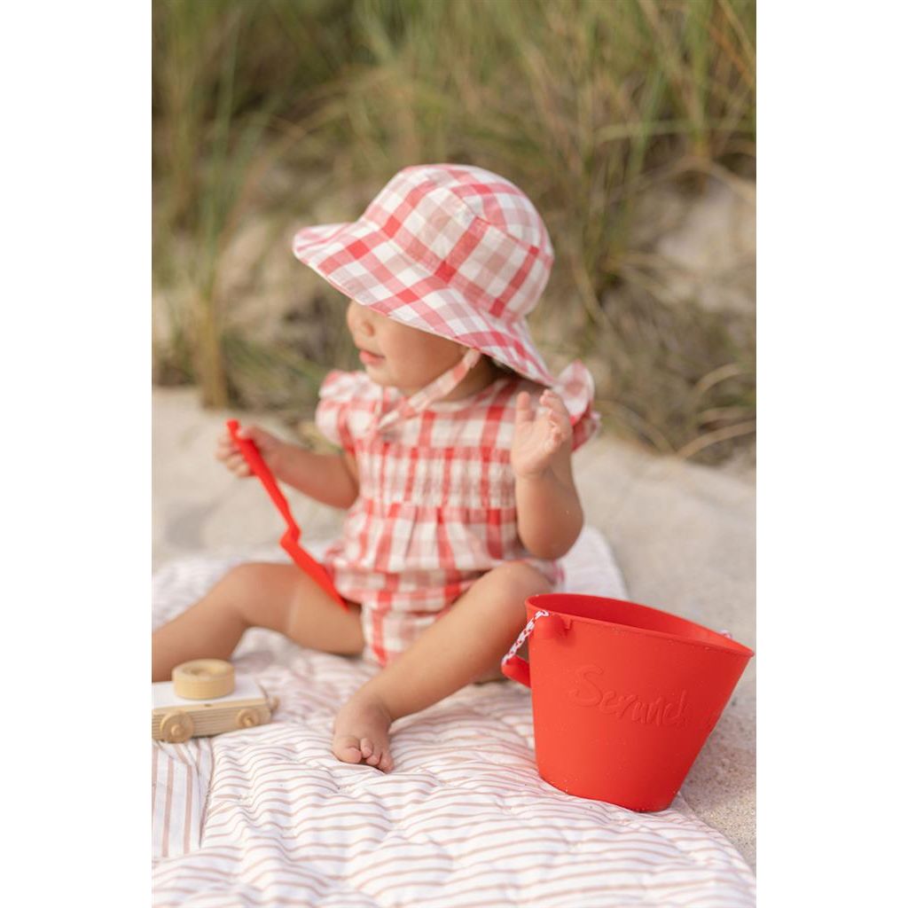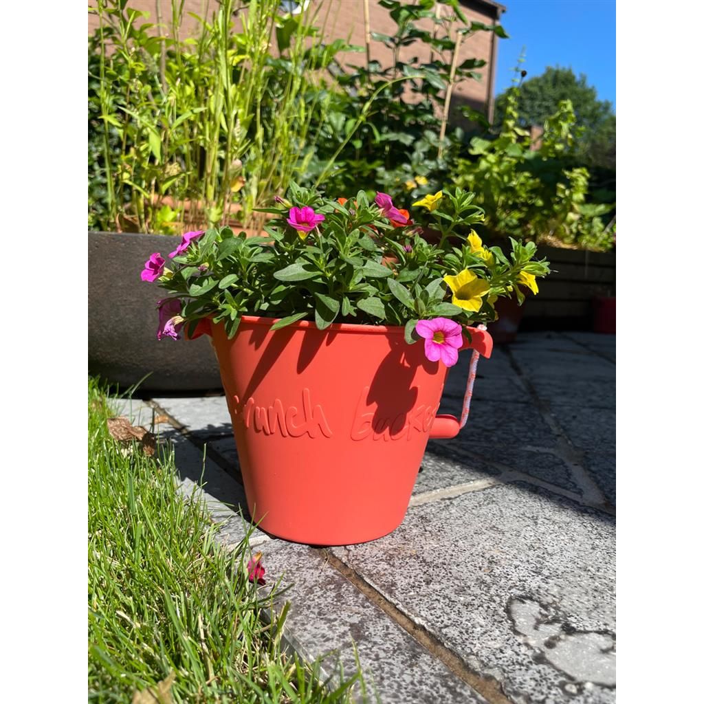 Scrunch-bucket is de originele opvouwbare siliconen emmer. Het is ontstaan omdat twee Engelse moeders het beu werden om goedkoop en slecht gemaakt strandspeelgoed van dun plastic te kopen dat gemakkelijk zou breken als ze op vakantie waren. Ze wilden een duurzamere benadering van strandspeelgoed. Het eerste product dat ze maakten was de Scrunch-emmer. De emmer die kan worden ingeklapt tot bijna niets en slechts 210 gram weegt. Toch kan er tot 1,5 liter in. Hij is gemakkelijk mee te nemen in een koffer of strandtas. Hij is bestand tegen zonlicht, grote hitte en koude temperaturen. Hier is hij in een koraalkleur.