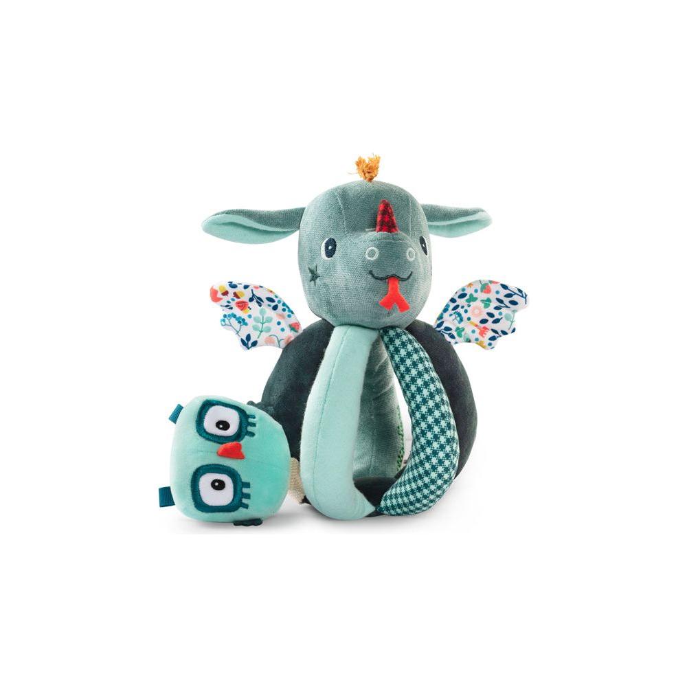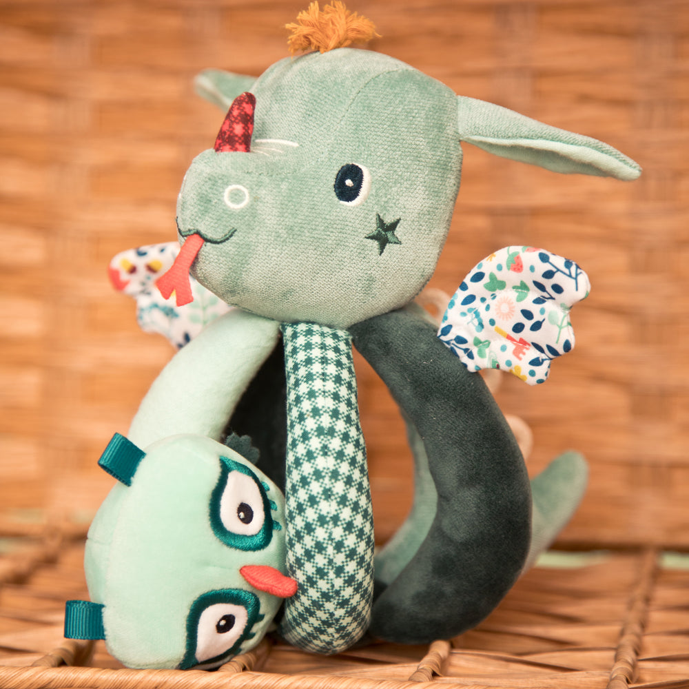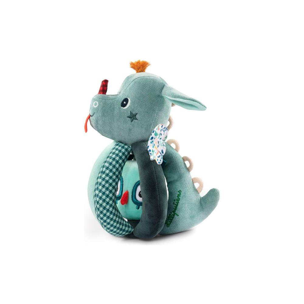 Een originele rammelaar, makkelijk vast te grijpen voor kleine handjes. Een klein vriendje schuilt tussen de handgrepen door. Vanaf 6 maanden.