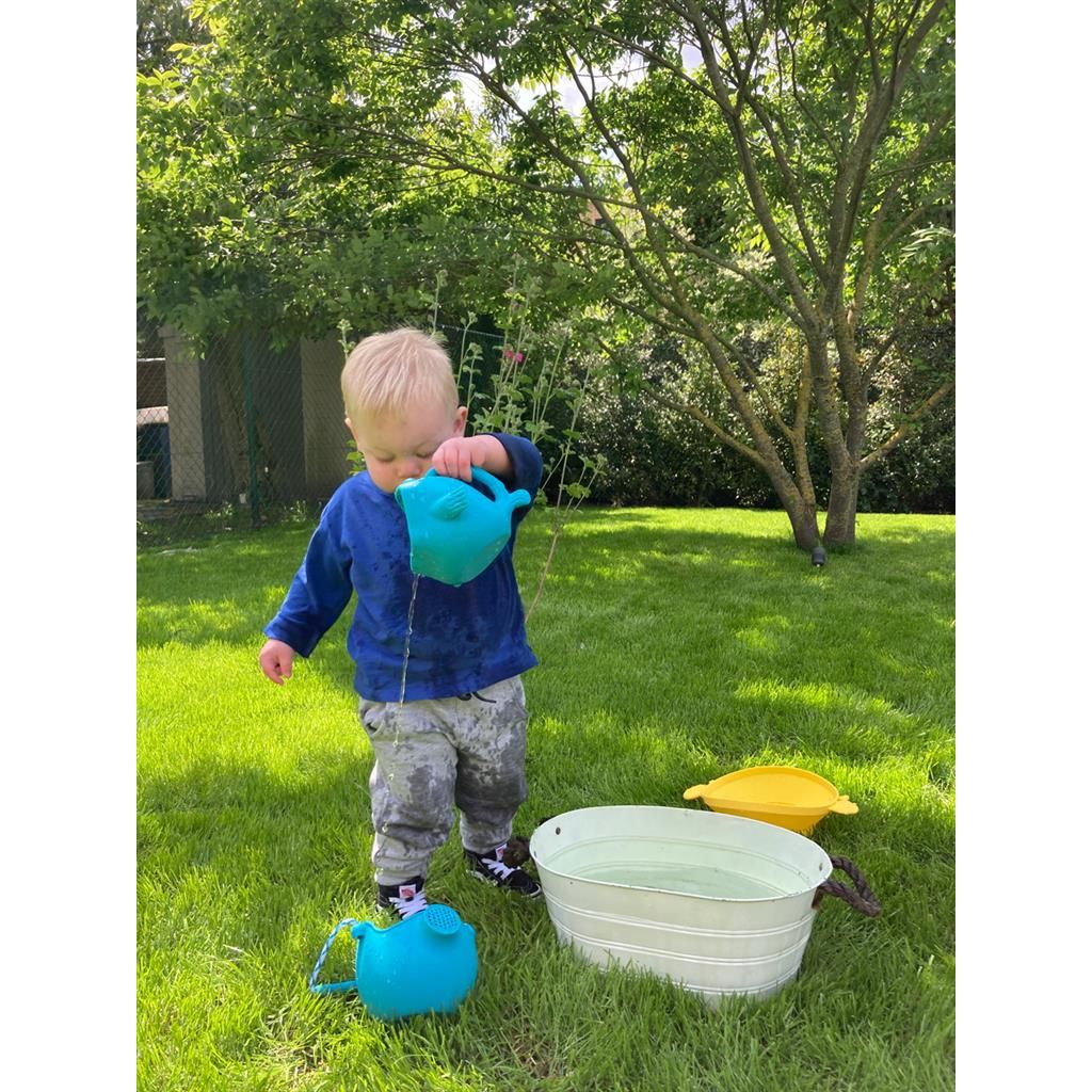 De Scrunch-scoopen is een spraakzame vis met grappige ogen en vinnen. Hij kan veel water tegelijk in zijn bek houden. Om het kind de kans te geven om te gieten zonder te veel te morsen, zit er een handvat aan zijn staart, waardoor het makkelijk is om de vis vast te houden. Terwijl het kind met de vis kan spelen, kan de volwassene hem ook gebruiken als een handig hulpmiddel tijdens het haren wassen, waardoor het haren wassen wat aangenamer wordt. Gebruik hem in bad of neem hem mee op vakantie of in de tuin, net als de andere Scrunch producten. Hier is hij in de kleur petrol blauw.