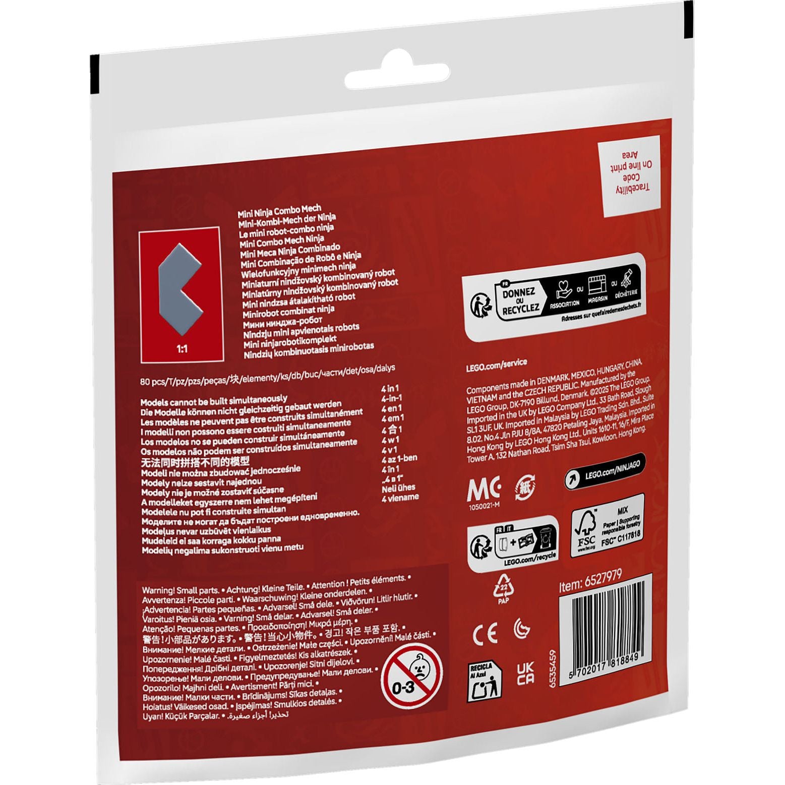 Met deze miniversie van Zane's ultra-combomecha (71834) kunnen kinderen een verstelbare mechafiguur met vleugels bouwen voordat ze hem ombouwen tot microversies van Zane, Riyu, een vliegtuig of een auto.