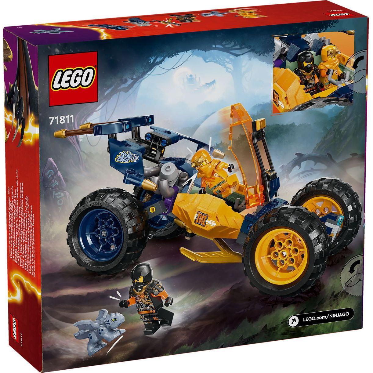 Met LEGO NINJAGO Arins ninjaterreinbuggy speelset kunnen kinderen actieverhalen uit het Schaduwbos naspelen met 4 minifiguren van NINJAGO personages.