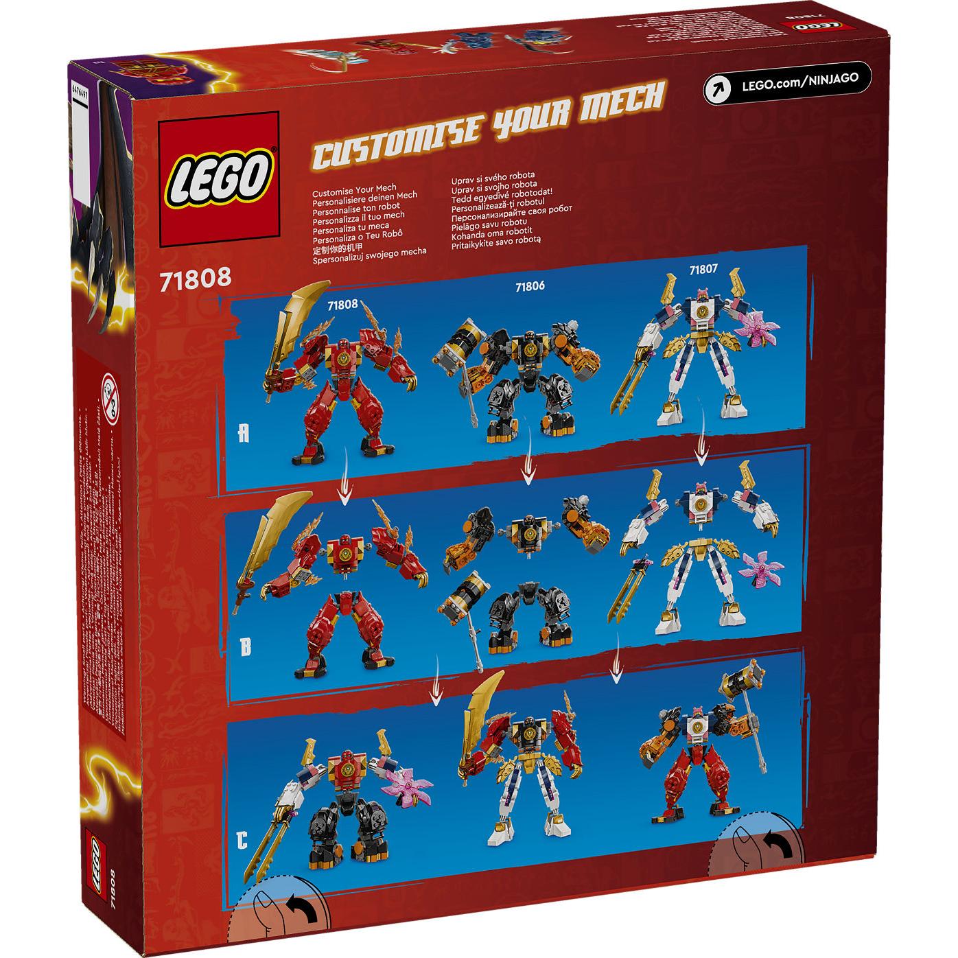 Met dit unieke mechabouwspeelgoed kunnen kinderen hun eigen aangepaste LEGO mecha ontwerpen om confrontaties na te spelen met 4 NINJAGO personages, waaronder Kai.