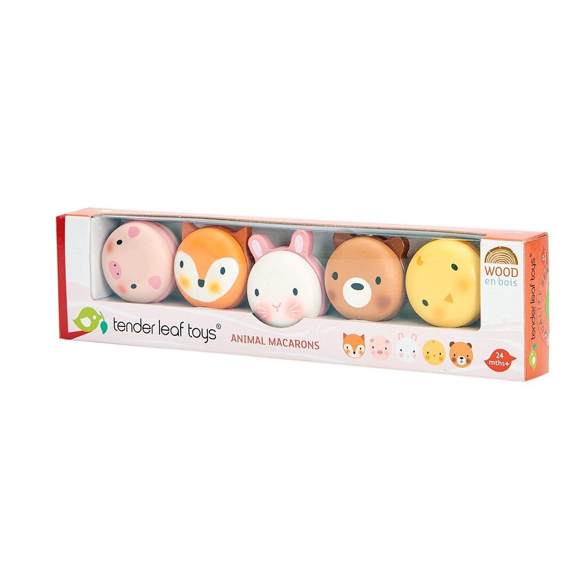 Vijf prachtig gekleurde macarons met de kopjes van een varkentje, vos, konijn, beer en kuiken. Elk koekje heeft een contrasterend randje vulling in het midden, net als een echte macaron! Zijn ze niet om op te vreten?