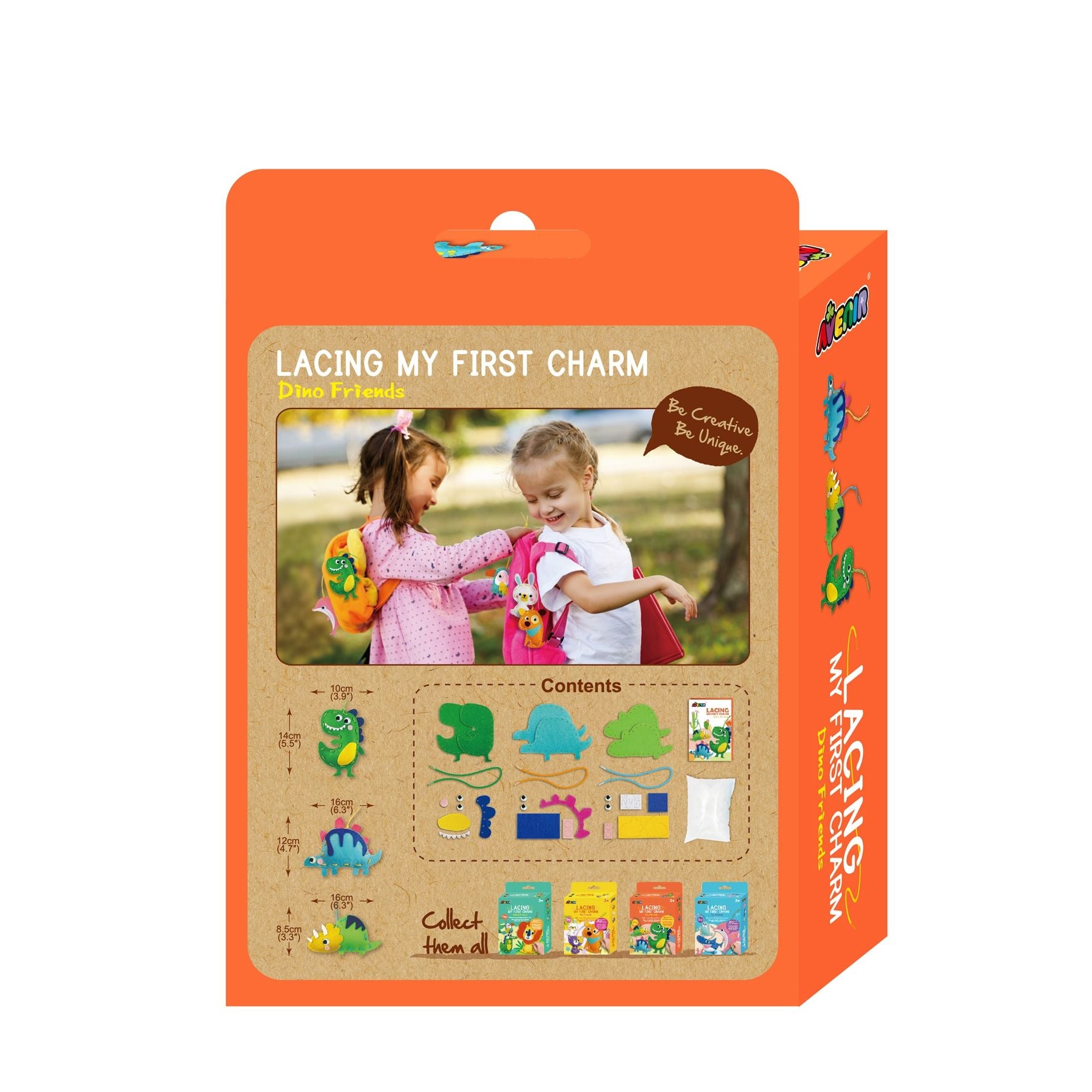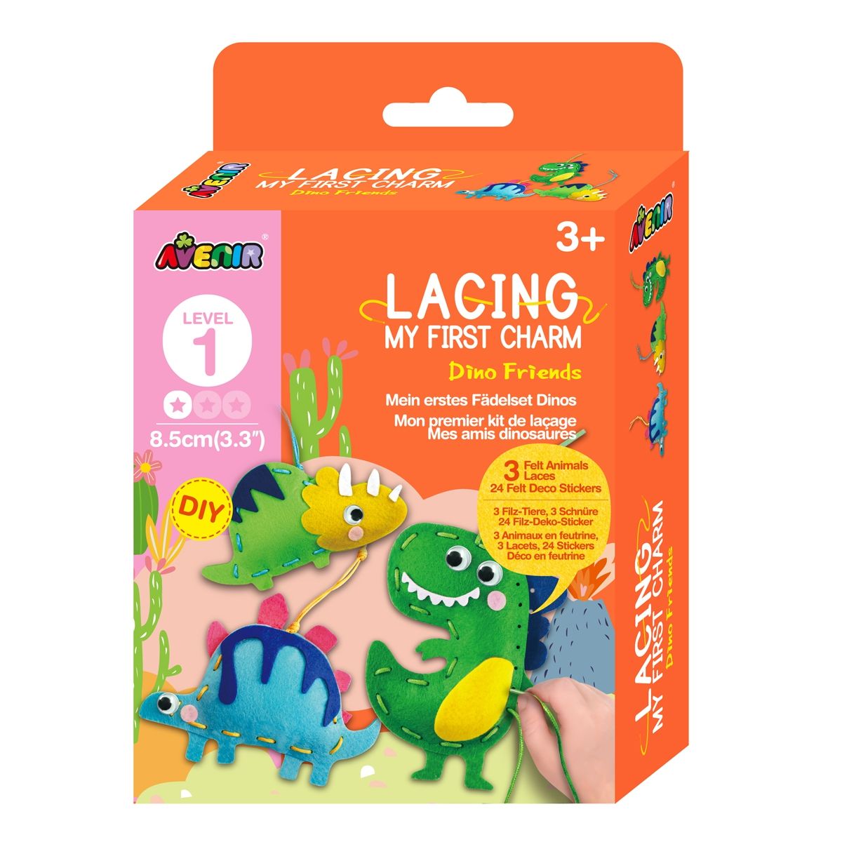 Het pakket "Mijn Eerste Hangertje - Dinovrienden" is ontworpen voor kleinere handen en bevat 3 makkelijk te maken, leuke dinofiguren om mee te spelen.Je hebt geen naald nodig - gebruik een rijgkoord om de 3 delen aan elkaar te naaien. Oefen met rijgen en overtrekken. Gebruik vilten decostickers om te versieren. Ontworpen om de oog-handcoördinatie en concentratie te ontwikkelen.Voor kinderen om te maken en overal mee naartoe te nemen!