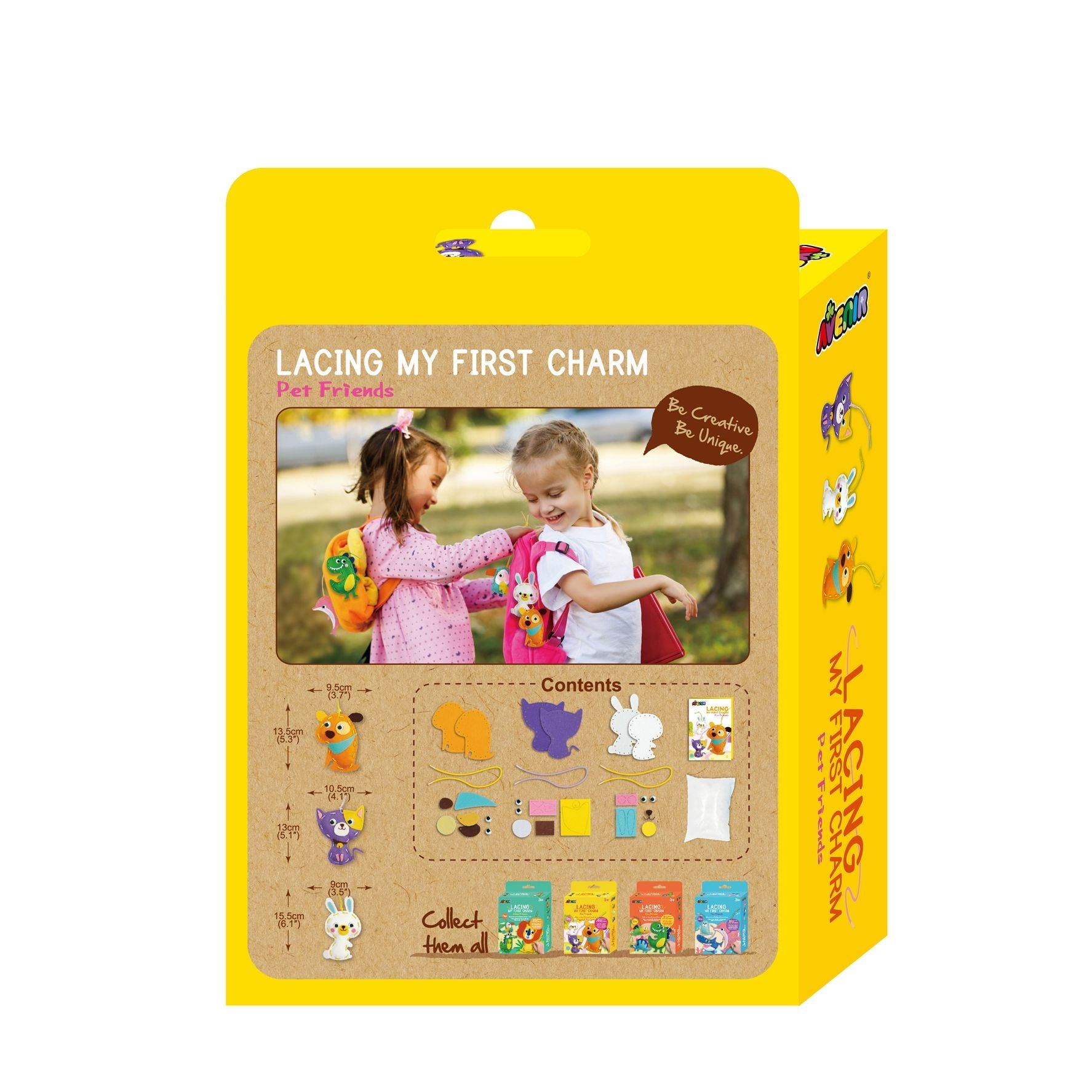 Het pakket "Mijn Eerste Hangertje - Huisdieren" is ontworpen voor kleinere handen en bevat 3 makkelijk te maken, leuke huisdieren om mee te spelen.Je hebt geen naald nodig - gebruik een rijgkoord om de 3 delen aan elkaar te naaien. Oefen met rijgen en overtrekken. Gebruik vilten decostickers om te versieren. Ontworpen om de oog-handcoördinatie en concentratie te ontwikkelen.Voor kinderen om te maken en overal mee naartoe te nemen!
