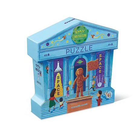 In het museum staat een echt ruimtepak, een raket, een Marsvoertuig en nog veel meer!Het is een onwerelds gaaf gezicht, al die ruimtespullen bij elkaar, maar prachtig om te zien! Bovendien is zo'n dag in het museum hartstikke leerzaam. Daarom maakte Crocodile Creek er een puzzel van. Lekker forse stukken en een superstoere afbeelding om telkens opnieuw te leggen!