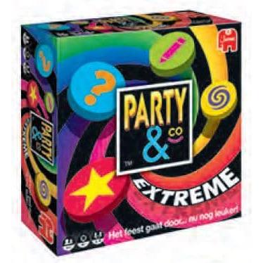 Inhoud: 360 kaarten met meer dan 700 opdrachten en vragen 24 ‘Partydance!’ kaarten 16 Stemkaarten 6 Doelkaarten Een draaibare verzamelbak Een uitklapbaar spelbord Een zandloper 32 ‘Pinda’s’ in 4 kleuren Een Partybril Een boetseerklei Een oranje kleurpotlood Een zwart potlood Een tekenblok Een dobbelsteen Spelregels