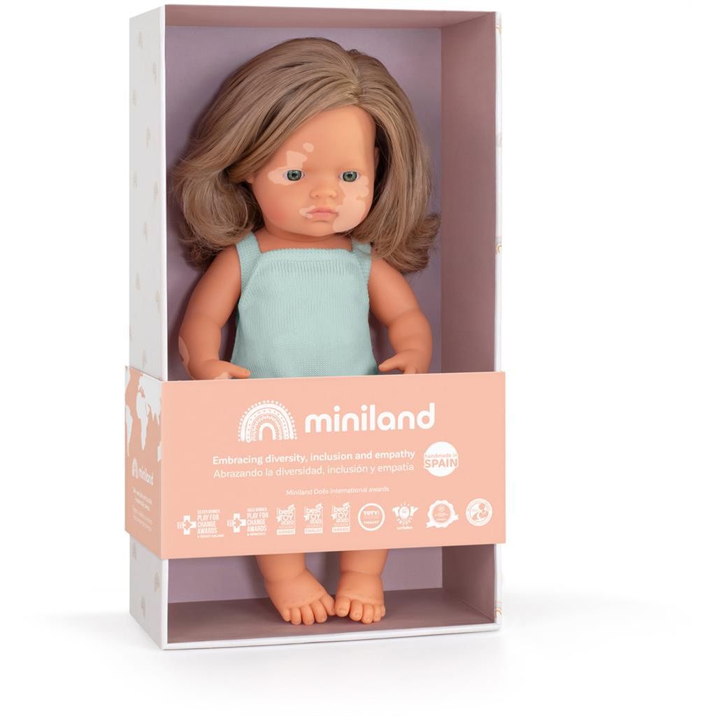Met hun uitgebreide poppencollectie wil Miniland belangrijke waarden als empathie en acceptatie van mensen, ongeacht hun afkomst en geslacht, in de kijker zetten. Je vindt zowel prachtige meisjes als jongens poppen van Europese, Afrikaanse, Aziatische en Latijns-Amerikaanse afkomst, alsook poppen met het syndroom van Down. Ze zijn verkrijgbaar in verschillende uitvoeringen en formaten. Sommige popjes geuren heerlijk naar vanille.