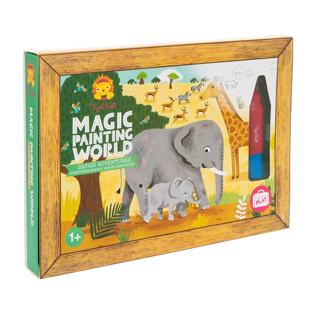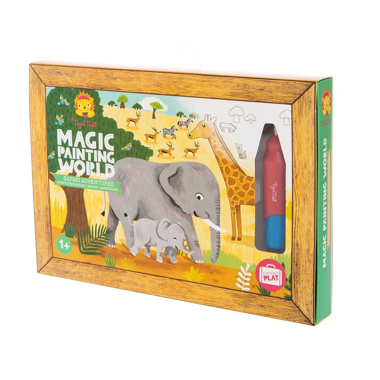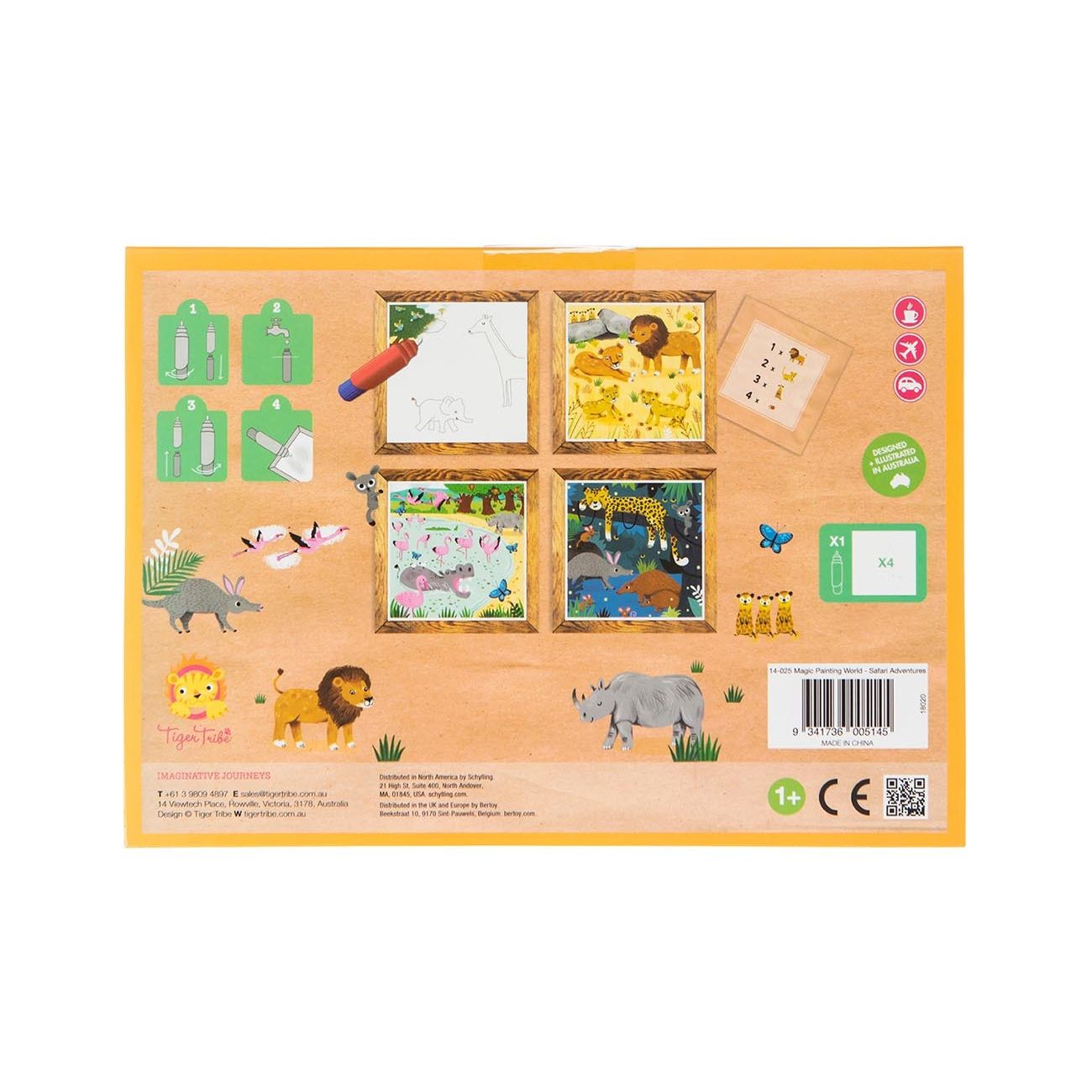 Word een magische kunstenaar met water. Vul de waterpen en laat de safaridieren op de schilderijen tot leven komen met iedere streek van je pen! En droogt je schilderij op, dan verdwijnt de kleur dus je kunt ze telkens opnieuw schilderen.Op de achterkant van ieder schilderij vind je dieren om te zoeken en te tellen. Ideaal om mee te nemen als speelgoed onderweg.
